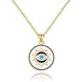 Smilebelle Evil Eye Necklace 14K Gold Necklaces for Women with Zircons, Handmade Gold Jewelry Luck Amulet Charm Pendant for Protection Third Eye Necklace Birthday Gift