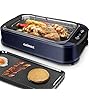 • Indoor Grill,Smokeless Electric Grill,1200W Korean BBQ Grill with Non-stick Removable Grill Plate & Griddle Plate,LED Smart Display & Tempered Glass Lid,Adjustable Temperature,Black
