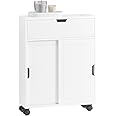SoBuy Bathroom Cabinet Storage Shelf with Wheels, Next to Toilet Storage Cabinet, Slim Toilet Paper Holder for Narrow Space,White, BZR31-W