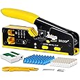 Solsop Pass Through RJ45 Crimper Kit All-in-One Ethernet Crimper Cat7 Cat6 Cat5 Crimping Tool with Network Cable Tester, 50-Pack Cat6 RJ45 Pass Through Connector, 50-Pack Connector Boots