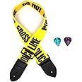 This item: Sopopal Acoustic Guitar Strap Electric Guitar Straps with Leather Ends Adjustable Classical Suitable For Bass, Electric & Acoustic Guitars (Yellow Police Line), Police Line Yellow, Fits Most