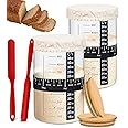 Sourdough Starter Jar Kit, DIOZYRA 2 * 35 Oz/1000ml Sourdough Starter Jar With Thermometer, Silicone Scraper, Cloth Cover & W ood Lid, Reusable Sourdough Tools, Use for Home Bakery(12Packs)