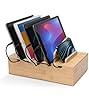 SpaceAid Bamboo Charging Station for Multiple Devices, Cell Phone Docking Charging Stations for Multi Laptop, Tablets and iPads, Nightstand Bedside Desk Device Charger Organizer (Natural)