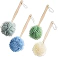 - Dimension:The whole loofah back scrubber size is about 14 inches long, the diameter of the bath ball is about 4.7 inches. effortless for you to reach any parts of your body, and will help you wash even the hardest to reach places.