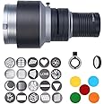 - 【Premium Material】Made of high quality aluminium alloy,the connected screws and gobos are also made of aluminium alloy,not plastic.Kit Includes:Optical Snoot *1,Color Filters *5,Gobo *20