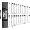 - 22 Pieces in SAE and Metric: With clear identification for each wrench, the 22-piece ratcheting wrenches set includes 11-piece SAE wrenches: 1/4", 9/32", 5/16", 11/32", 3/8", 7/16", 1/2", 9/16", 5/8", 11/16", 3/4", and 11-piece METRIC wrenches: 6mm, 8mm, 9mm,10mm, 12mm, 13mm, 14mm, 15mm, 16mm, 17mm, 18mm.