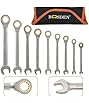 - Robust Construction: Crafted from premium chrome vanadium steel, the ratchet wrenches set ensures durability and withstands heavy use over time. And the high polish finish on these combination wrenches makes it much easier to keep them clean and oil/grease free.