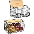 This item: 2 Set Stackable Wire Basket with Openable Top, Kitchen Counter, Pantry Organizer and Storage Produce Onion Potato Fruits Vegs Bread Food Snack Spice Organizing Bin for Cabinet Shelf Countertop Floor