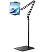 - FLEXIBLE TABLET FLOOR STAND : 13.7-INCH flexible gooseneck arm is long enough. It can be easily adjusted to your desired position. The universal ball on the back of the tablet clamp provides more than 360 degrees rotating. It is available for you to adjust the view angle of tablets or Phones with one hand. Useful - Flexible gooseneck arm can be bent in any directions. 360-degree rotating holder will satisfy your needs better.