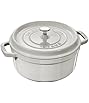 Proudly made in France, STAUB cast iron cookware possesses exceptional heat-retaining qualities, so it heats evenly throughout, making it unsurpassed for slow-cooking food to tender perfection, and for simmering hearty stews. Its textured enameled black matte interior browns food beautifully, without sticking. Classic STAUB lids are heavy weight and tight-fitting to retain moisture. Tiny spikes on their interior create a rain-forest effect, evenly returning juices back onto food.