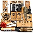 Beard Straightener Grooming Kit for Men, Beard Growth Kit, Wash, Brush & Comb, Unscented Growth Oil, All Natural Chanel Balm, Conditioner, Razor & Scissors, Great Gift Idea for Men's (Bamboo)