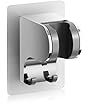 RIVOODS 3rd shower head holder with suction cup powered. It featured with 5 angles adjustable and unique 90 degree downward adjustment. The extra adhesive pad included enable you to use it for some slightly textured walls. Both the suction attachment and adjustment construction is strong enough to supports larger heavry shower head.