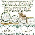 Best Wish and Exquisite Pattern: The baby shower party supplies are printed with vibrant sage green eucalyptus garland and printed with foil gold stamped "oh Baby" to express your best wishes to your Baby Boys and Girls. The greenery baby shower disposable dinnerware will make the Birthday Party Decorations extra meanful and special.