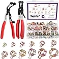 🥇 Swpeet 122Pcs 7-22mm Spring Band Hose Clamps with Swivel Flat and 45°Angled Flat Band Fuel Hose Clamp Plier Kit, Silicone Vacuum Hose Action Pipe Clamp Low Pressure Air Clip Clamp for Hose Clamps