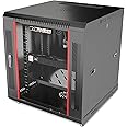 12U Wall Mount Server Rack Cabinet, 19” Locking Network Rack, 24” Deep, Glass Door, with Fan, PDU and Shelf