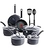 • T-FAL, Culinaire, Pots and Pan Set, 16- Piece Set, PFOA Free, Thermo-Spot Heat Indicator, Black, All cooktops (excluding Induction), Dishwasher Safe, Oven Safe, Cookware Set, Pot Set