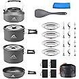 This item: THTYBROS 27pcs Camping Cookware Mess Kit for 2-4 People, Portable Cookware Set with Kettle, Pots & Pans, Stainless Steel Utensils, Plates, Dishware for Backpacking, Picnic, Outdoor Adventures