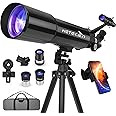 This item: Telescope, 80mm Aperture 600mm Telescope for Adults Kids Beginners, Refractor Telescope AZ Mount Tripod, High Magnification 24X-180X, with Phone Adapter & Carrying Bag