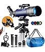 Telescope for Kids and Beginners, 150 X 70mm Larger Aperture 300mm Astronomy Refractor Telescopes with Double Eyepieces, Finderscope, Phone Adapter, Adjustable Tripod and Moon Filter