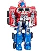 - This toy robot changes into the signature red and blue Optimus Prime toy truck in 6 simple steps! Easy conversion for kids 6 years old and up!