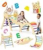 This item: Pikler Triangle Set 7in1 Toddler Climbing Toys Indoor Foldable Baby Climbing Toys Wooden Montessori Set with Arch, Ramp, Ladder for 1-3 Years, Jungle Gym for Kids