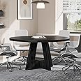 Tribesigns 47-Inch Round Conference Table for 4-6 People, Wooden Meeting Room Table with Thicken Tabletop and Wood Base (Black)