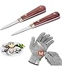 - Oyster knife with a sharpened stainless steel blade to pry open even the toughest shells