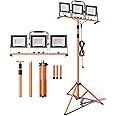 Upgraded 21000Lumen LED Work Lights with Stand - 3 Head Adjustable Work Light with 16FT Cord - IP66 Waterproof Tripod Worklights with Individual Switch for Outdoor Indoor Portable & All-round Lighting