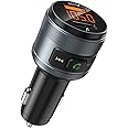 (Upgraded New Version) Bluetooth FM Transmitter for Car, Wireless Radio Transmitter Adapeter Car Kit, Dual USB Ports, QC3.0 Quick Charging, Hands Free Calling, Support USB Flash Drive Music Play