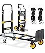- 【Telescopic Rod & Adjustable Handle】Our 3-in-1 convertible hand truck adapts to different cargo sizes and height requirements with telescopic tie rods and an adjustable steel pipe handle. Effortlessly switch between four-wheel and two-wheel configurations in seconds without tools. Perfect for warehouses and moving tasks, this foldable hand truck is your ultimate companion