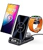 - 3 in 1 Fast Charger Stand:Our Wireless Charger is designed for Samsung devices. 3W Max for Galaxy Watch 8/Watch 8 Classic; Watch Ultra; Watch7; Watch6 Classic/6; Watch5 Pro/5; Watch4/4 Classic; Watch3(Not for Galaxy Watch (2018), GalaxyGear 1/2/live/S/S3/S2/S4/Sport; Galaxy Gear Fit/2/3/Fit e; Watch Active/2); 15W Max for Galaxy S25 Ultra/S25 Plus/S25/ S24 Ultra/S24 Plus/S24/S23 Ultra/S23 Plus/S23 /S22 Ultra/S22 Plus/S22/S21 Ultra/S21 Plus/S21; Galaxy Z Fold/Z Filp 7-1 series; Galaxy 20-S9 series; Galaxy Note 20-8 series and other phones that support qi charging; 5W Max for Buds. (For iPhone 12-16 series, it supports magnetic charging with the phone alone or with magnetic case)