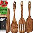 Product Summary: Wooden Spatula for Cooking, Kitchen Spatula Set of 4, Natural Teak Kitchen Utensils Including Paddle, Turner, Slotted Spurtle and Wood Scraper - Nonstick cookware