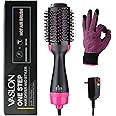 2025 New Updated VASLON One-Step Hair Dryer & Volumizer Hot Air Brush, 4-in-1 Hair Dryer Brush Styler for Straightening, Curling, Salon Negative Ion Ceramic Lightweight Blow Dryers Straightener Curl Hair Brush Heat Resistant Gloves