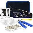 - COMPREHENSIVE ACCESSORIES: Come with 50 gold-plated pass-thru RJ45 connectors and strain relief boots, a wire cutter, and a mini stripper. With everything in a portable cloth bag, this network crimping tool kit saves time, effort, and the cost of hiring help, ideal for DIYers