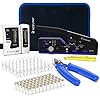 - COMPREHENSIVE ACCESSORIES: Come with 50 gold-plated pass-thru RJ45 connectors and strain relief boots, a wire cutter, and a mini stripper. With everything in a portable cloth bag, this network crimping tool kit saves time, effort, and the cost of hiring help, ideal for DIYers