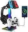 VCOM RGB Gaming Headphones Stand with 10 Light Modes, 4 Controller Holder with 1 USB & 2 Type-C Charging Ports,Headset Stand Suitable for All Earphone Accessories, Best Gift for Desk Gamers