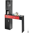 Product Summary: VEVOR Salon Station, Wall Mount Barber Salon Station for Hair Stylist, Beauty Spa Furniture Set, 1 Storage Cabinet, 3 Cubbies and 2 Drawers(One Lockable), Black and Red