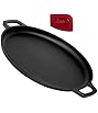 - EASY TO USE: This versatile oval cast iron pan can be used with an induction, gas, ceramic, or electric stovetop or in an oven, on a grill, or over a campfire. The stylish curved edge design allows you to use this pan for frying, baking, grilling, serving, and more.