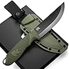 - HIGH-QUALITY MATERIAL - The fixed blade hunting knife with sheath is made of a single piece of strong D2 steel (60 HRC). It's known for its exceptional hardness and wear resistance. An ideal choice for full tang knives, ensuring durability in rugged environments.