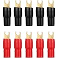 This package comes with 5 pairs of crimp terminals and connectors. fork terminal, superior electrical . Gold plated to protect against and to ensure increased power flow and the audio without distortion. 4 gauge power wire/ ground wire fork terminals. Alternative for banana plugs. Safer than connecting bare wires.