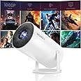 - [ 180° Rotatable Short Throw Projector ] Featuring a 180° adjustable stand, this 1080p projector allows you to effortlessly project from any angle—whether on a table, bedside, wall-mounted, or even the ceiling—providing flexible viewing options for any space