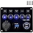 This item: 5 Gang Marine Boat Rocker Switch Panel, Waterproof Boat Toggle Switches Panel with 4.2A Dual USB Charger Socket + LED Voltmeter + 12V Power Outlet for RV Car Boat Truck Camper Vehicles GPS