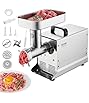 The meat grinder comes with 2 stainless steel grinding plates (5 mm and 8 mm) so you can control meat texture, a cutting blade, sausage stuffing funnel and stomper.