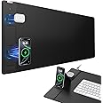 - 【4-in-1 Wireless Charging Desk Mat】31.5" x 15.8" extra large mouse pad with 15W fast charging for phone, 5W charging for AirPods, built-in phone stand & tangle-free design for work/gaming