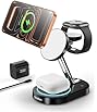 - 【What You Receive】Featuring a lightweight, compact design, this charging station is ideal for bedside tables (keeps your nightstand neat while powering multiple Apple devices). The package includes:1 x 4-in-1 Magnetic Wireless Charging Station,1 x Charging Cable,1 x User Guide