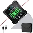 Magnetic Digital Angle Finder with Laser(Level 2), USB Charging Digital Level Box, Mini Protractor Angle Gauge, IP54 Waterproof, 4-Side Strong Magnetic Inclinometer for Woodworking,DIY