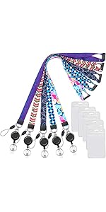 YOUOWO 5 Pack Cruise Neck Lanyards Retractable with Vertical ID Badges and Re...