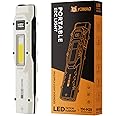 - 【880 Lumens Dual Light Sources】Flat flashlight rechargeable features both a focused beam flashlight and a wide-angle COB work light panel,provide up to 880 lumens,at least 2 hours in high-brightness mode and 11 hours in energy-saving low mode,high lumen flashlight widely used in camping,car repair,night work,home projects,fishing expeditions.
