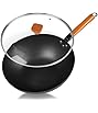 This item: Wok Pan Nonstick, YuSailng Carbon Steel Wok with Lid - Including Glass Cover, 13''/5.6L Woks & Stir-Fry Pans for Induction, Electric, Gas Stoves