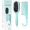 ZAINY Curly Hair Brush Set 2 PC & Wide Tooth Comb for Curly Hair, Curl Defining Brush for Women Wet Hair Detangling & Styling Curls, Detangler Curl Brush & Curl Comb Sets, Travel Hairbrush for Kids Toddlers, Girls & Men - Teal Green